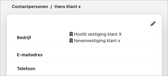 Daarnaast kan een contactpersoon gekoppeld zijn aan meerdere bedrijven, zodat communicatie en facturatie altijd op de juiste plek terechtkomen.