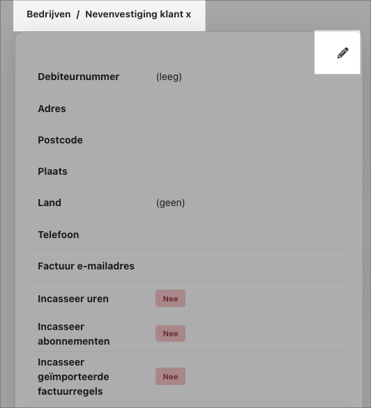 - Ga naar het bedrijf dat een nevenvestiging is.